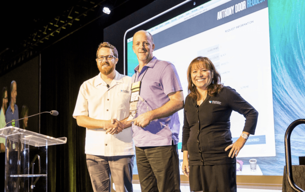 Chamber of Commerce President, Lee Wochner, presents David Knight with the 2017 “Small Business of the Year” award.