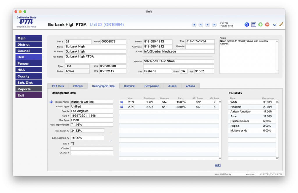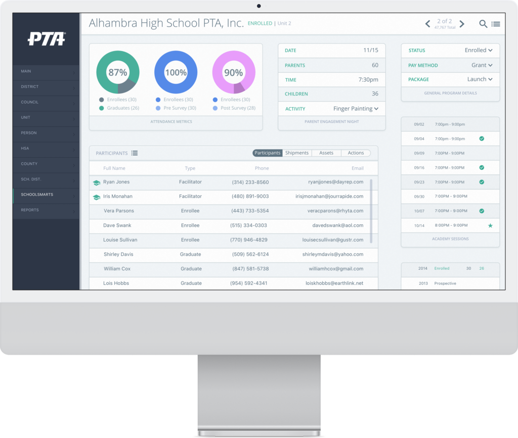 For over 120 years, the PTA (Parent Teacher Association) has worked towards making every child’s potential a reality by engaging families and advocating for children. The California State PTA manages 20% of the nation’s PTAs, with thousands of schools, and over one million members. Since 2004, Angel City Data has partnered with the organization to revolutionize their workflows in areas of membership dues, school demographics, program goals, and special awards and certificates. The system’s powerful reporting engine allows leadership to view trends and determine the effectiveness of their various programs. The system also features integration with their website and accounting package to speed the flow of data, eliminate manual re-entry, and minimize data entry errors. The system has reduced over 20,000 hours of manual data entry from their previous methods.